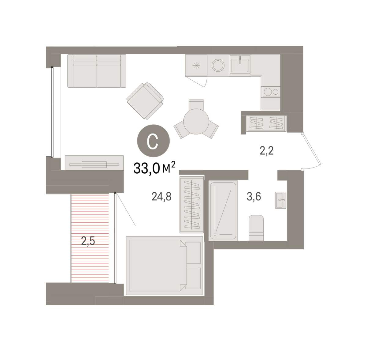 Продажа квартиры-студии в новостройке в Нефтеюганске 30-40 кв.м.